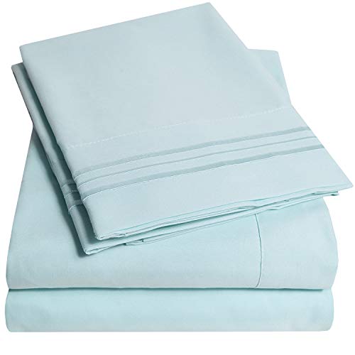 The 1500 Supreme Collection Bed Sheets by Sweet Home Collection offer a seamless blend of style and functionality. The light blue color provides a calming and refreshing ambiance to any bedroom, while the fabric’s hypoallergenic nature ensures a healthier sleeping environment. The deep pocket design, with dimensions accommodating thicker mattresses, guarantees a snug fit that stays in place throughout the night.
