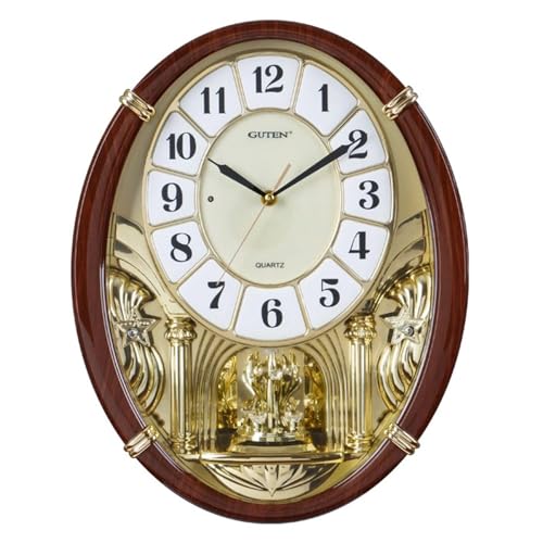 KELAOTE Melodies in Motion Musical Wall Clock | Chiming Wall Clock with Rotating Crystal Pendulum | 12 Melodies | Adjustable Volume | Night Shutoff