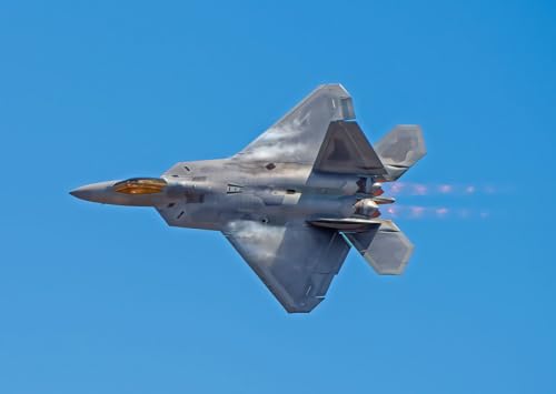 - Multicolor design adds depth and realism to the F-22 Raptor image