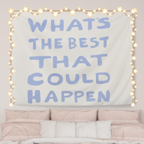 AQYIP What's the Best That Could Happen Inspirational Tapestry, Motivational Tapestry Decorative, Trendy Blue Positive Quote Wall Tapestries Blanket Decor for Home Office, 50x60 Inch