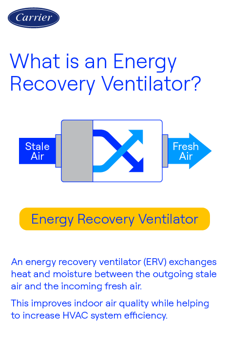 An ERV is a device that exchanges indoor and outdoor air. It recovers energy from outgoing air to condition incoming air efficiently. This improves indoor air quality and reduces heating and cooling costs.