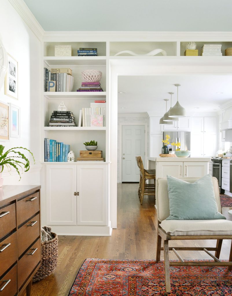 Think about whether your space could benefit from a touch of shine or transparency. Could metal and glass accents make your bookshelves stand out while fitting your style?