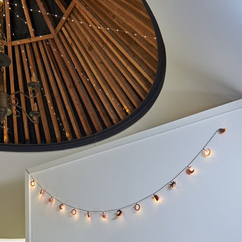 Creating a canopy effect with fairy lights brings an enchanting feel, perfect for bedrooms or outdoor patios. Attach the lights from a central point on the ceiling and let them fan outwards like a tent.