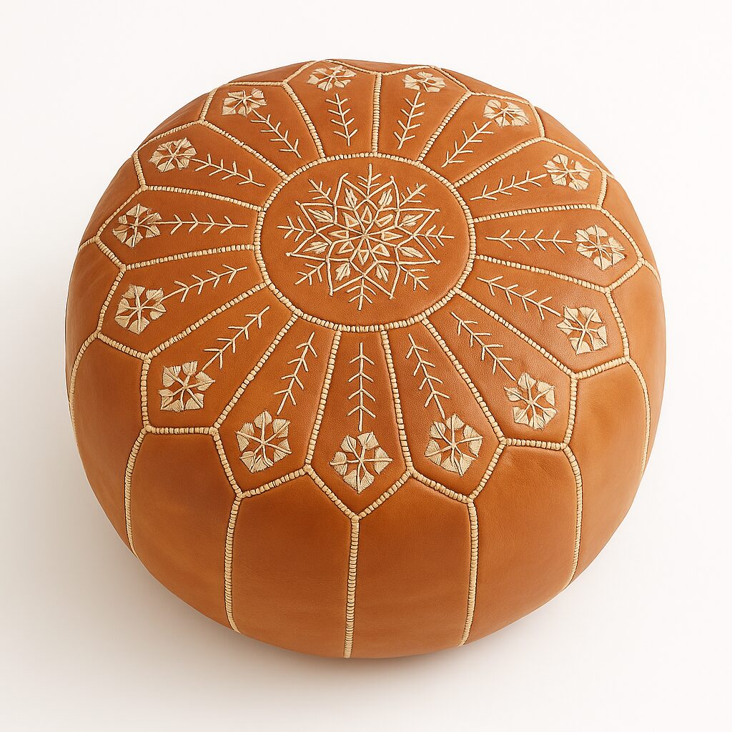 Natural fabrics like leather and cotton are popular for Moroccan poufs. Leather gives a classic, rich look. It is strong and ages well. Cotton feels soft and is easy to clean. Synthetic fabrics like polyester are durable and affordable. They resist stains and wear well.