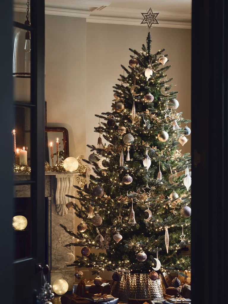 Wrap lights around the branches, pushing them deeper into the tree to add depth and avoid just lighting the outer edges. This technique helps your tree glow from within, making it look fuller and more vibrant.
