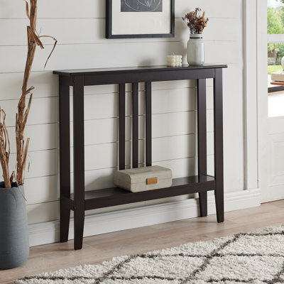 Sofa tables are usually placed behind sofas but work well in entryways too. They are longer and slimmer, perfect for narrow spaces. Sofa tables often hold lamps or picture frames.