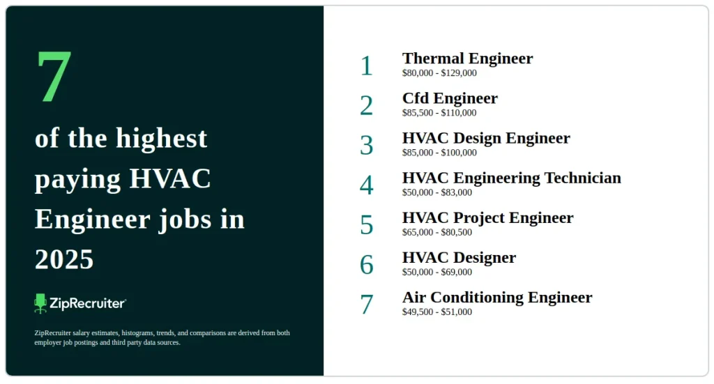 Specializations like HVAC system design, controls, and energy management tend to offer the highest pay in the industry.