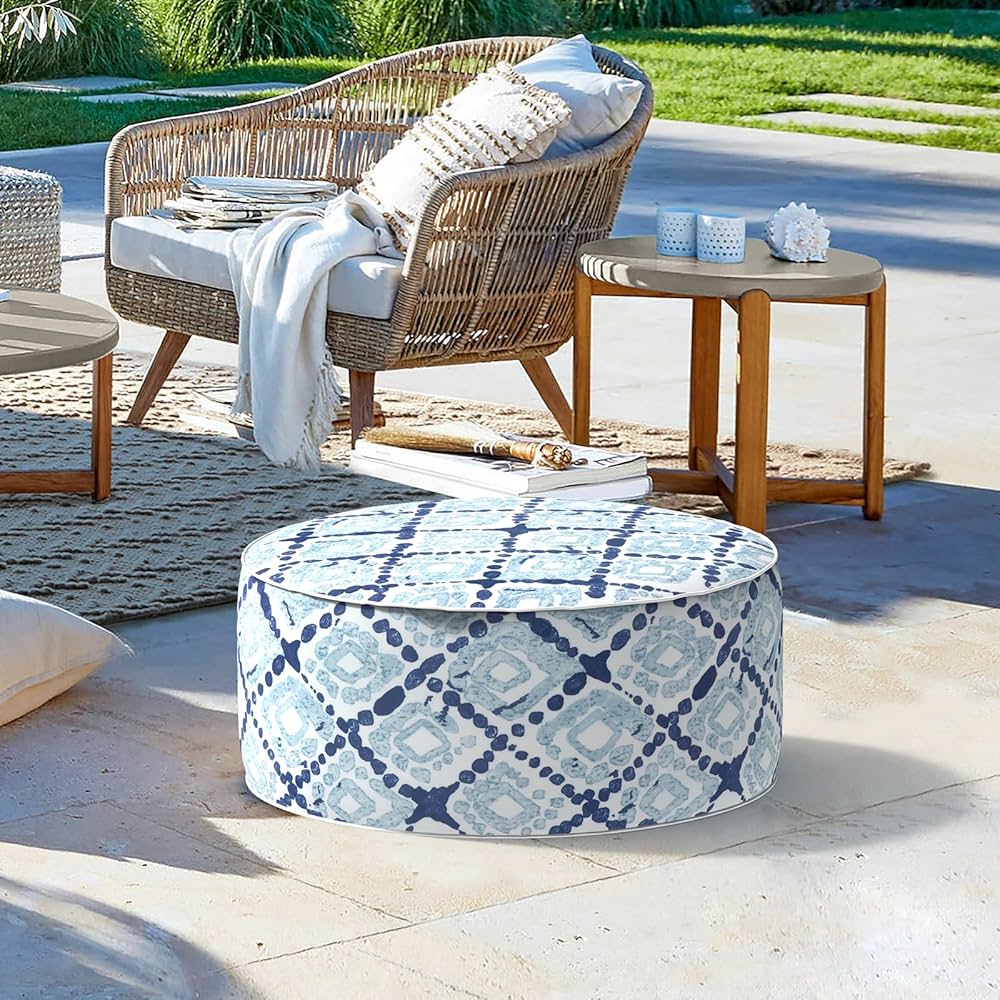 Outdoor poufs add comfort and style to any space. They serve as extra seating or footrests. You can move them easily around your patio or garden. Their lightweight design makes them perfect for outdoor use. They also help create a cozy and inviting atmosphere.
