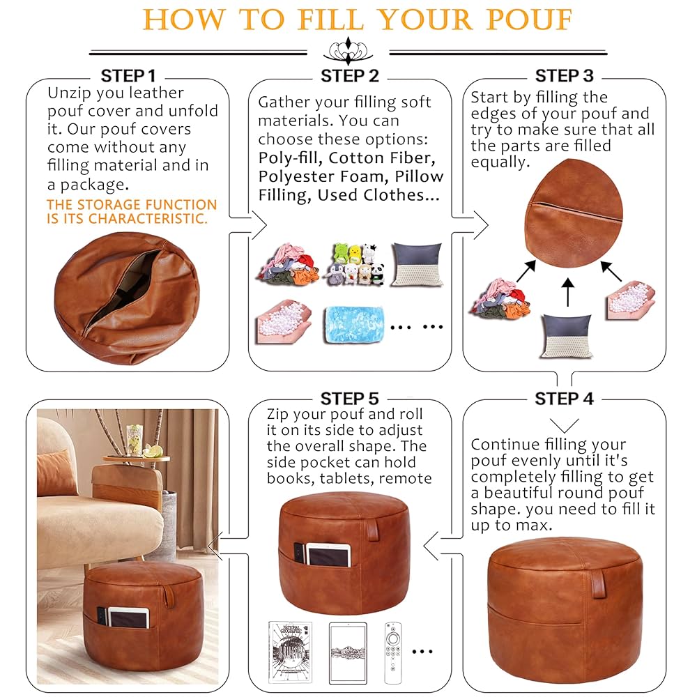 Some fillings break down faster with use. Foam tends to last longer but can lose firmness over time. Beans and beads may compress and need refilling. Polyester fiber is easy to clean and maintain. Consider how often you want to replace or refill the pouf.