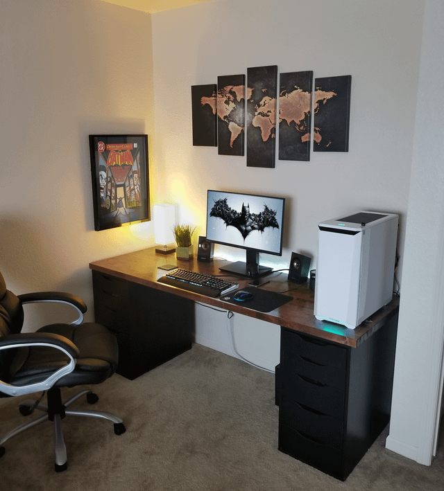 Your two monitors likely take up a significant portion of your desk. Are they side-by-side, angled inward, or stacked? The way they face affects how light hits your screens and workspace.